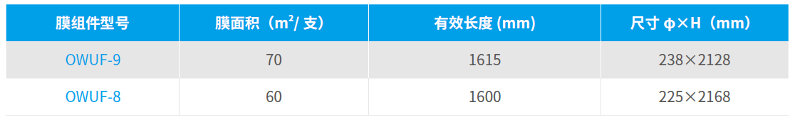 注:灌封胶材质为环氧树脂;膜管材质为UPVC。