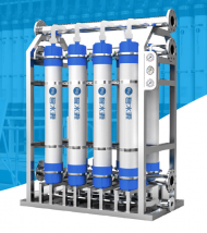 OWUF 外置式超滤膜组器是由不同数量的OWUF外置式超滤膜组件组成,可根据用户需求进行灵活配置。组器环形布水布气结构,能更有效控制污染,是国家“十二五”水专项重大成果之一,荣获“中关村新技术新产品”、“北京市新技术新产品”等荣誉。该产品在北京高碑店再生水工程(100 万m³/d)的成功应用,是我国超滤用于再生水领域的里程碑。