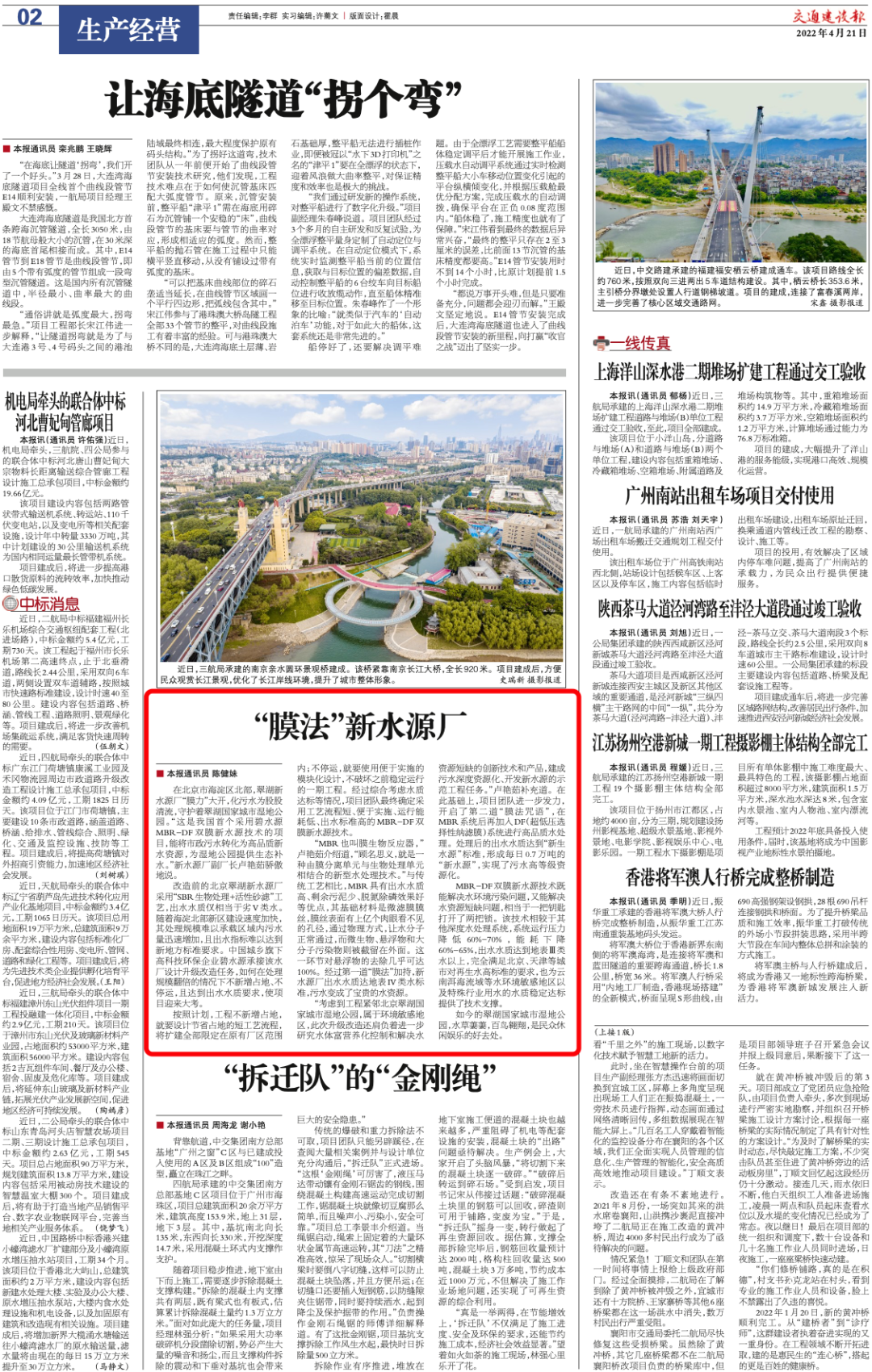 《交通建设报》:“膜法”新水源厂